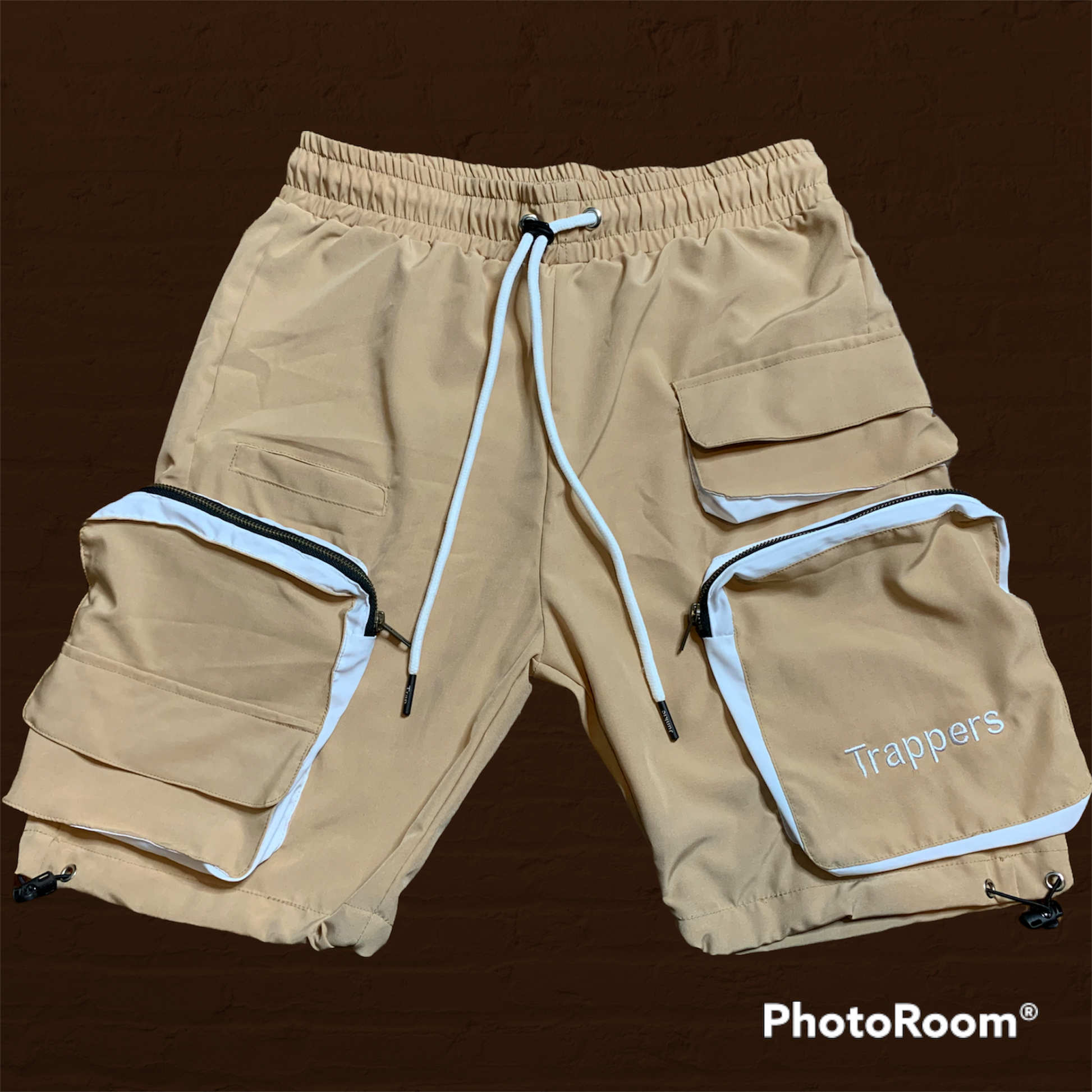 High Quality Cargo style Shorts with multiple pockets and storage areas. “Trappers” Logo embroidered on pocket. “Trap Junkie” printed on string tip.